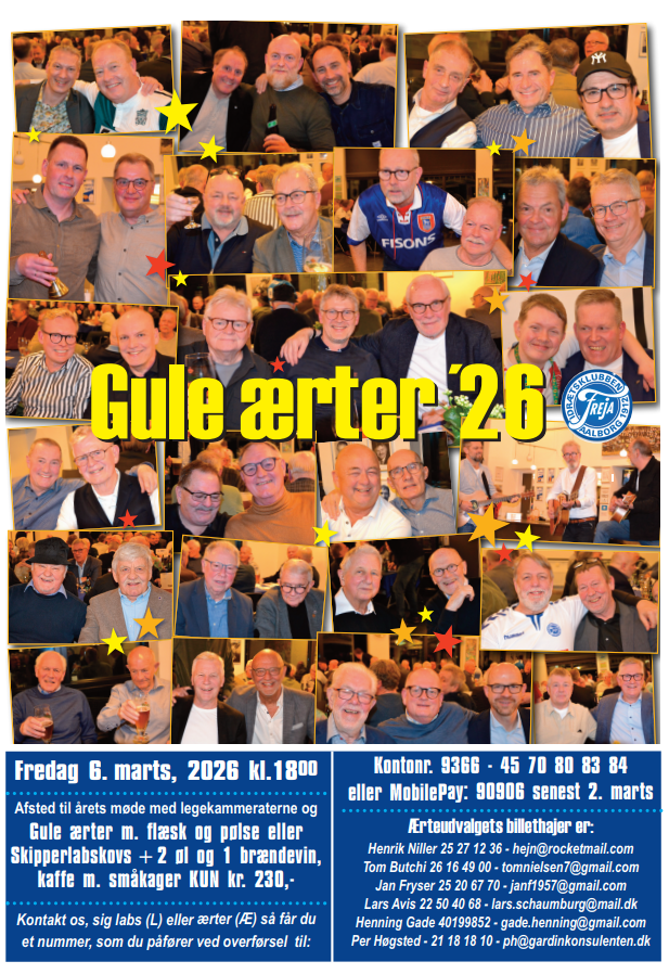 Tilmelding: Kontakt ærteudvalget. Sig/skriv labs (L) eller ærter (Æ) så får du et nummer som du påfører ved overførsel til: Kontonr. 9366 4570808384 eller MobilePay 90906 (HUSK NAVN I BESKED FELT!)